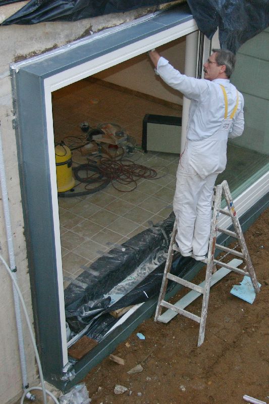 Nach Montage des Fensters starten Putzer und Maler