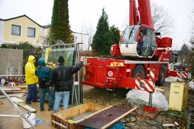 Für die Montage der Dachfenster passen die Schlosser einen perfekten Regentag ab.