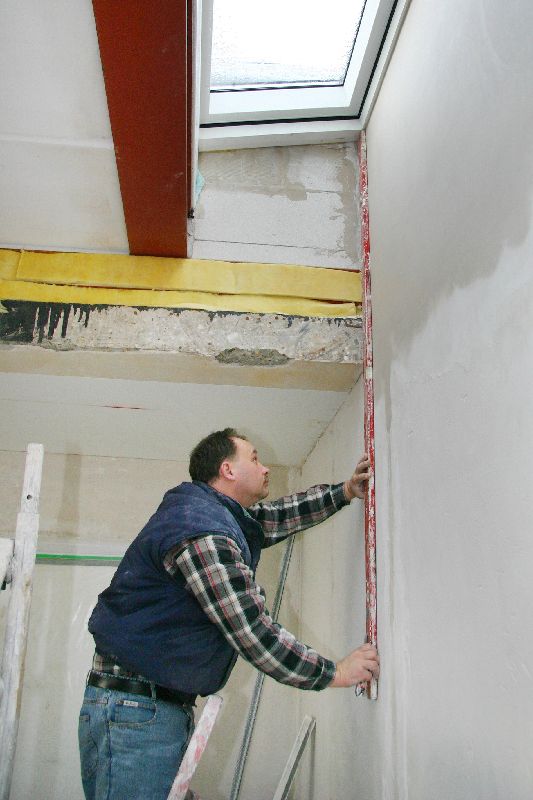 Der heikle Übergang von der abgesägten Betondecke über den Träger bis zum Dachfenster ist Chefsache.