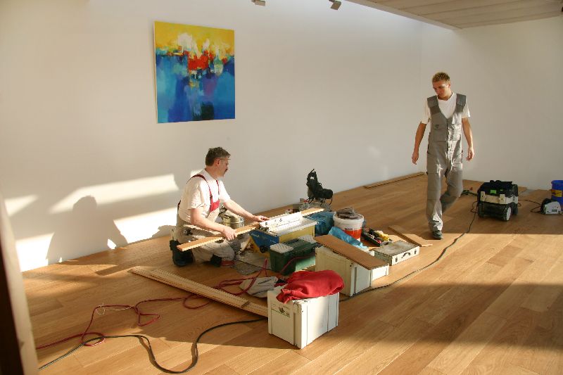 Die Einpassung der Eichendielen über der Lichtfuge sind eine Herausforderung