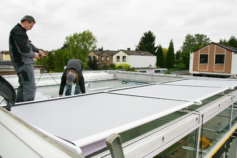 Die elektrische Beschattungsanlage sorgt bei Sommer-Sonnenschein für Behaglichkeit im Wohnzimmer.