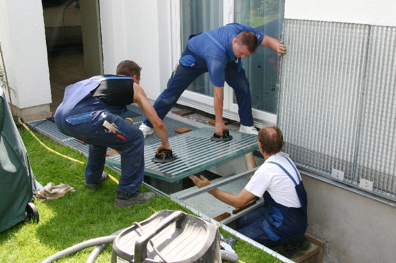 Verlegen der begehbaren Fensterscheiben über dem Kellerabgang