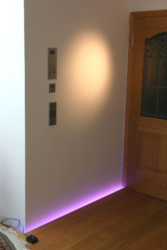 Musterbetrieb der Neonlichtfuge im Boden mit Handsteuerung
