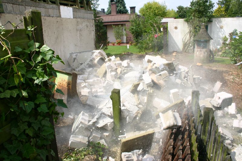 RUMMS - Alarm am Telefon! Den Nachbarn flogen fast die Tassen aus dem Schrank. Entschuldigung, soll nicht wieder vorkommen. Der große Abbruchbagger wurde heim geschickt.