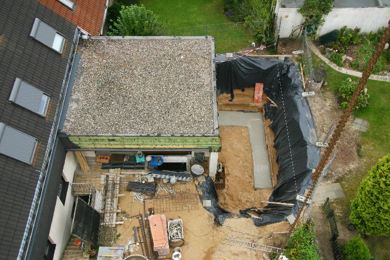 Die frisch betonierte Sauberkeitschicht aus der Vogelperspektive
