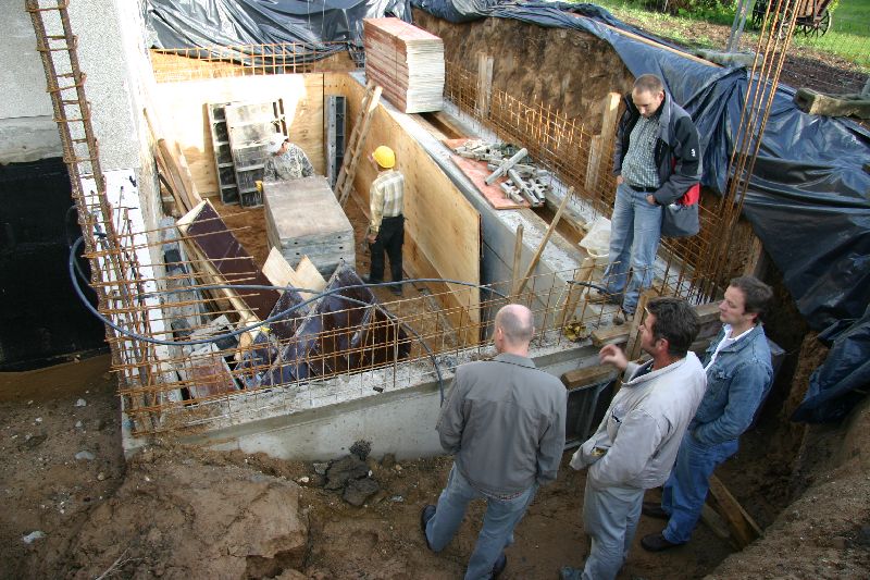 Ortsbesichtigung des Architekten-Teams mit Bauleiter und Polier. Ist die Null-Höhe nun auf Oberkannte Fertigboden? Und worauf bezieht sich denn die Mauerhöhe?