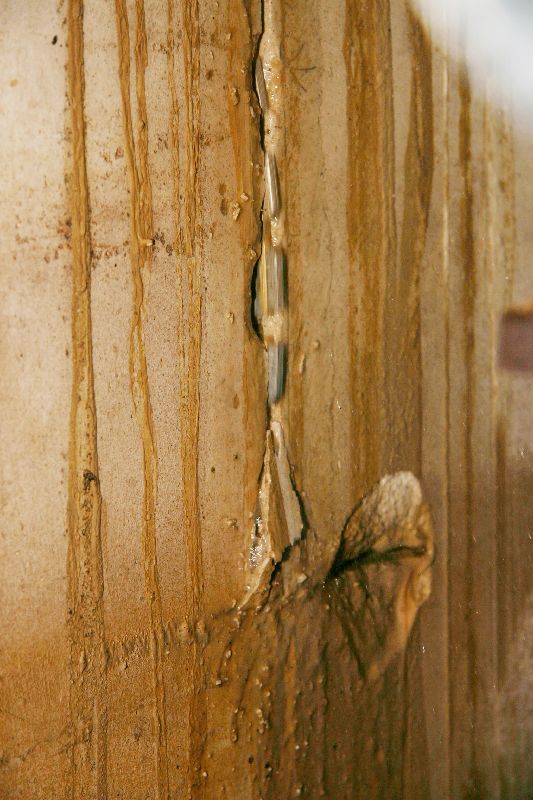Im Blitzlicht glänzt das Hartmetall bestückte Sägeblatt, welches knirschend den Beton durchtrennt.