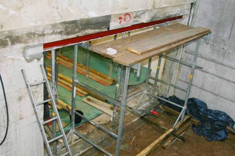 Der Träger wurde mit Quell-Beton in die geborten Auflager gesetzt