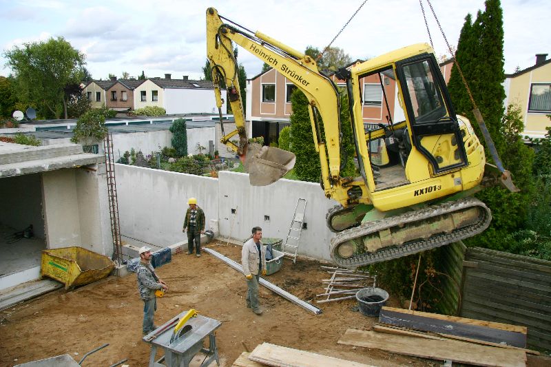 Per Luftfracht, weil der Baukran ihm den Weg versperrt, ...