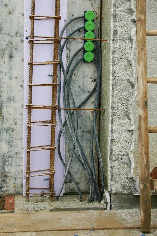 Kunst am Bau - Die Schalterdosen am Terrassenausgang von hinten.